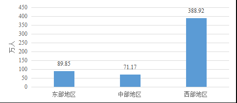 从区域来看,西部地区资助56.23亿元,占70.10%;中部地区资助7.97亿元,占9.94%;东部地区资助16.01亿元,占19.96%。