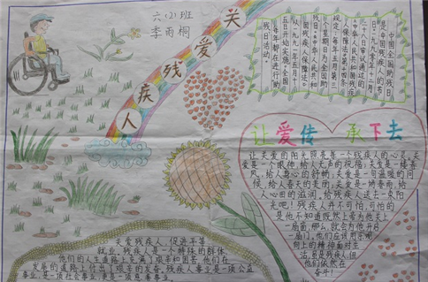 给予能给别人送去帮助的同时给自己带来一份快乐,是一种善良,是一种美德,更是一种精神,相信我们每个同学都有一颗善良的心,能在爸爸妈妈的支持下无私地帮助我们身边的残疾儿童,尤其是曾经获得过帮助的同学,更能踊跃地帮助残疾儿童,给他们送去阳光和快乐吧!