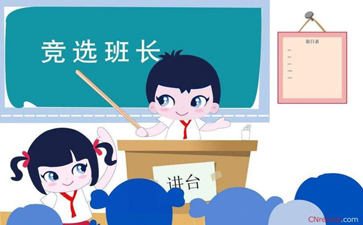如果你们成功竞选我为班长,我将会做到以下几点。第一我会认真的协助老师工作,帮助老师,让班级越来越好。我会及时的通知老师下达的各项工作和要完成的任务,包括每天的作业,还有其他需要做的杂事。我会很好的负责班里的秩序,当老师不在的时候我会认真地监督学生们的学习成果和情况。在学校的各种事务中,我也会通知我们班并且做好人员分配。第二我会尊敬老师,与同学和睦相处。我很善于与人交流,特别是与师长,我尊重师长,尊重老师,从来不和老师顶嘴,认真听老师的话。同时我跟同学的关系也很和睦,很和谐。我可以跟大家和睦相处,我很乐于帮助每一位同学,如果大家在生活中在学习中有什么难题都可以来找我。第三,我会带头参加班级和学校的各项活动。比如班级评优和学校各种竞赛中,我会为大家起到带头作用,带领大家参加活动并且拿到奖项。