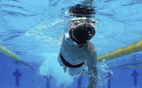 完成入水之后,手掌掌心开始由斜向外下转为斜向内后,逐渐弯手肘、弯曲手腕,手肘始终高于手臂,为下一步的划水做好准备。