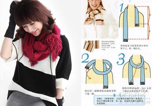 长围巾的系法图解一 韩式单层淑女结