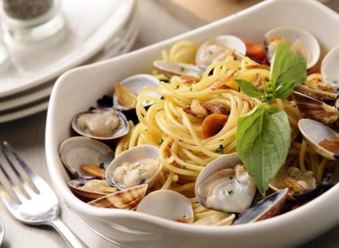 主料:文蛤200克、洋葱100克、罗勒20克、意大利面120克。
