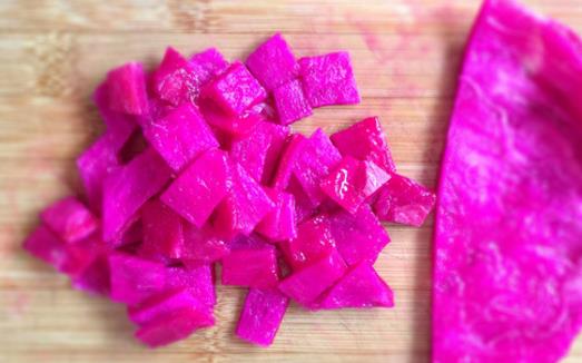 (1)将火龙果皮切小块。