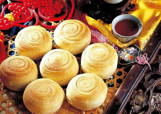 潮式月饼产于广东潮汕地区,流传于闽南一带,是酥皮月饼的代表,潮式月饼身较扁,饼皮洁白,以酥糖为馅,入口香甜、脆软、肥而不腻而驰名海内外,现已成为全国闻名的五种风味系列饼食之一。不同于苏式月饼,传统中讲究的“水油立酥皮”的“起酥”工艺就在这里得到体现!百般翻转,千番压叠的外皮入温油一炸,层次分明的外观如牡丹展姿层层绽放,酥皮一碰即落,入口即化,酥脆娇嫩之感不言而喻。