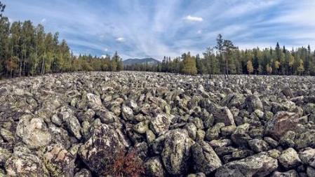 石头河位于巴什科尔托斯坦共和国的别洛列茨克地区,形成于10000年前的冰川地质活动。长度达到6公里,平均宽度200米,最宽处有700多米。乱石密集程度之高,从天上看下去,就好像是一条波光粼粼的大河,十分壮观。