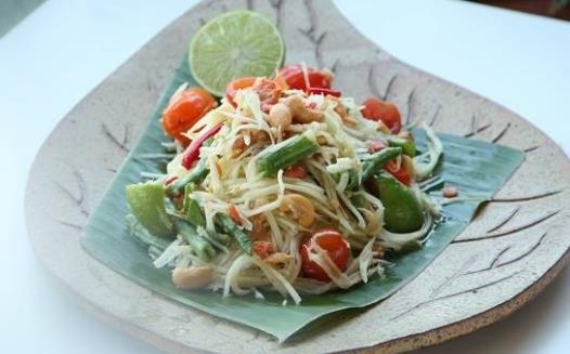 8、泰国青木瓜沙拉:一听到青木瓜沙拉,就知道是除了冬阴功之外的第二有名的泰国菜。尤其在闷热的天气,品尝这道酸辣中再带点木瓜特有的清甜味的凉菜,简直是一种享受。整道菜香辣带酸,口感爽脆,入喉那股柠檬的清新果香,酸、辣、甜、咸、香,让味蕾应接不暇,十分开胃。