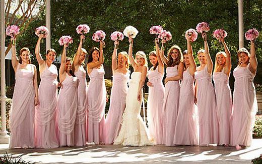 通过以上原则,伴娘可以选择粉色柔和色系来进行服饰搭配,这样的穿着能体现新娘的典雅和伴娘的清秀。天造之合!
