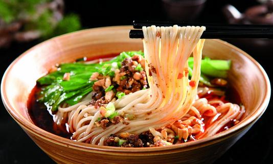 担担面是四川民间极为普遍且颇具特殊风味的一种著名小吃。因常由小贩挑担叫卖,由此得名。此面色泽红亮,冬菜、麻酱浓香,麻辣酸味突出,鲜而不腻,辣而不燥,堪称川味面食中的佼佼者。其面条细滑,主要佐料有红辣椒油、肉末、川冬菜、芽菜、花椒面、红酱油、蒜末、豌豆尖和葱花等,口味油香麻辣,比较适口。