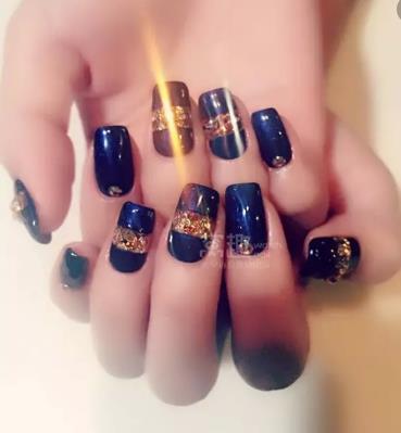 像深蓝色这样比较深的颜色,其实上手效果是很有气质的,但是有些女生会觉得不太能接受这种深色的艳丽感,其实我们可以用这样的蓝色纯色美甲,搭配上一些浅色的纯色美甲,这样看起来就不会显得艳丽,又很好的用到了深蓝色的高级感,让整款美甲显得更加柔和了。