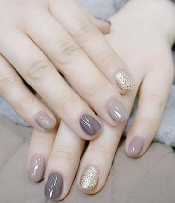 像这样比较淡雅的颜色,做成纯色美甲,一方面有着很温柔的气质,另个一方面又显得比较低调,让指尖感觉少了一些亮点。我们可以用两个不同色号的颜色做成跳色美甲,这样在视觉上形成了对比,会显得更有亮点,也可以搭配上整甲造型的亮片美甲,可以起到提亮效果,让整款美甲更有高级感。