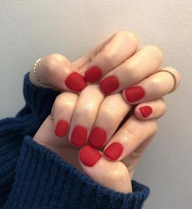 同一款颜色的纯色美甲,做成普通和磨砂两种不同的质感,也会在视觉上形成对比,让原本比较单一的款式,呈现出不同的层次感,虽然是同一个颜色,因为不同的光泽,会有完全不同的质感。