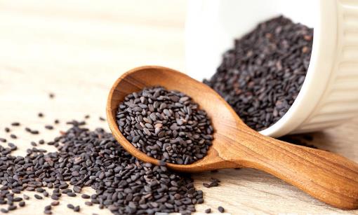 5、黑芝麻:黑芝麻含有多种营养物质,如油酸、棕榈酸、维生素E、叶酸、蛋白质、钙等,油脂的含量特别高,能对润泽肌肤、滋养头发起到一定作用,能改善头发干燥、易断等不良状况。