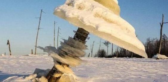 现在,专家们对阿穆尔河流域水库中的“神奇”冰蘑菇有了一个解释。高大的树木被水库淹没了。冬天水位下降,湖水结冰,露出的树干上“长”着冰块。
