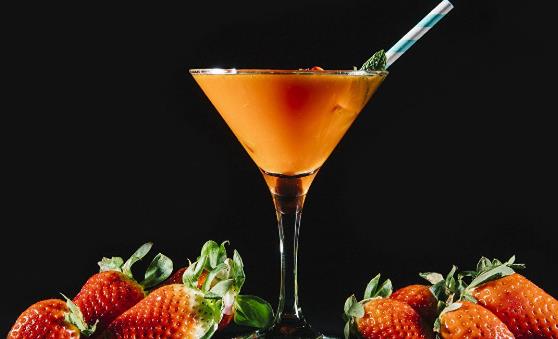 鸡尾酒——草莓龙舌兰,这种果汁浓厚的调酒最适合在草莓成熟时享用。