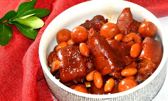 配方:红皮花生米250克、红枣150克、莲子肉250克、猪蹄3~4个。