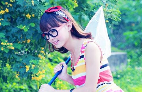 选择黑色眼线笔,对着镜子勾勒睫毛根部的空隙,一根根的画好。