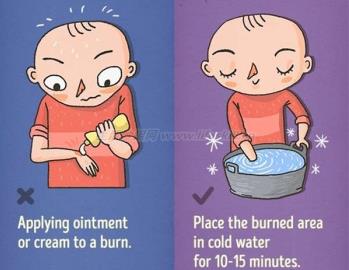 烫伤后不要立刻擦药膏,应将受伤部位在冷水中浸泡15分钟,如果马上涂药膏恐会使得多余的热量无法排除,反而会被困在患部。冰敷20分钟或更久之后再涂抹药膏比较好。