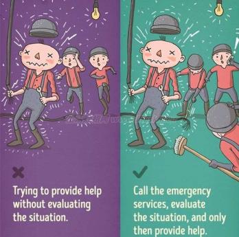 热心救人是好事,但太鲁莽的话,非但不能救人,自己还会受伤。确保自己不会受伤再救人。比如有人触电,就用木头、橡胶将对方与电源分离,而不是急着冲过去把人拉走。