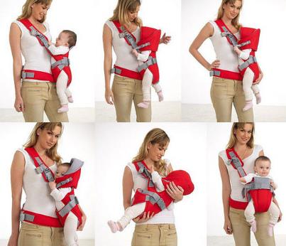 市场上的婴儿背袋种类比较多,功能大同小异,比如横抱式可以让0-4个月的宝宝在妈妈胸前斜躺着,有点像喂奶的姿势;前抱式则适合4-12个月的宝宝,这种姿势既可以让宝宝面向妈妈,又可以让宝宝像袋鼠一样脸朝外,便于开阔视野。值得注意的是,使用完要解开背袋时,最好坐在床上或椅子上比较安全。