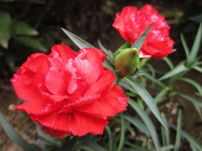 康乃馨,原名:香石竹,又名:狮头石竹、麝香石竹、大花石竹,全株无毛,粉绿色。茎丛生,直立,基部木质化,上部稀疏分枝。叶片线状披针形,顶端长渐尖,基部稍成短鞘,中脉明显,上面下凹,下面稍凸起。花常单生枝端有香气,粉红、紫红或白色;花梗短于花萼;宽卵形,顶端短凸尖,花萼圆筒形,萼齿披针形,边缘膜质;瓣片倒卵形,顶缘具不整齐齿;雄蕊长达喉部;花柱伸出花外。蒴果卵球形,稍短于宿存萼。花期5-8月,果期8-9月。