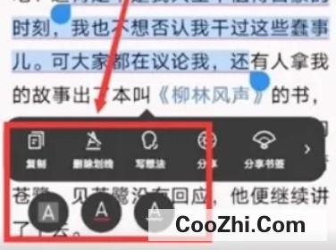 02点击任意书籍长按文字即可选中该文字。