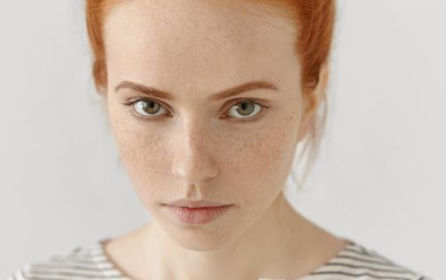 雀斑:针尖至米粒大约棕色小斑点,散布在两颊及鼻梁,一般幼年时就有,并始终存在。