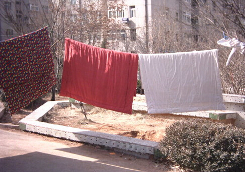 其次,化纤面料或混合纤维面料的被子,不宜在阳光下曝晒,因为化学纤维长时间处在高温下会释放出化学物质。这类被子可以先覆盖一层薄棉布再晒,就能保护被面不受损害了。另外,羊毛被和羽绒被的吸湿性和排湿性非常好,晾晒时最好也盖一块棉布。