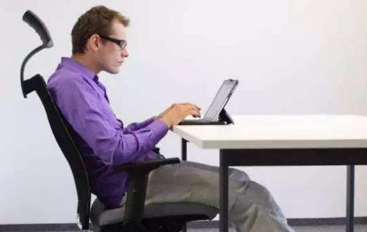 2、必须选择符合人体工学设计的桌椅,使用专用的电脑椅,坐在上面遵循“三个直角”:电脑桌下膝盖处形成第一个直角,大腿和后背是第二个直角,手臂在肘关节形成第三个直角。肩胛骨靠在椅背上,双肩放下,下巴不要靠近脖子。两眼平视电脑荧幕中央,座椅最好有支持性椅背及扶手,并能调整高度。