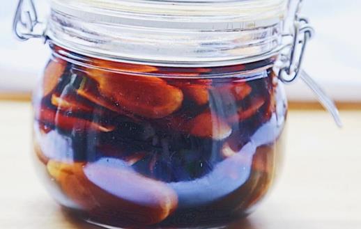3、把切好的姜放到瓶子里,随后把醋倒入瓶里,注意,这个瓶子一定要洗干净,瓶子里面不能有油,以免生姜变质;醋一定要没过姜片,不能让姜片露出来,随后把这瓶用醋泡的姜片放到冰箱的冷藏室里储存。一周以后就可以每天吃2~4片鲜姜,有非常好的降血脂、辅助治疗关节炎的作用。长期服用,到老了不受伤,而且还能益寿延年。