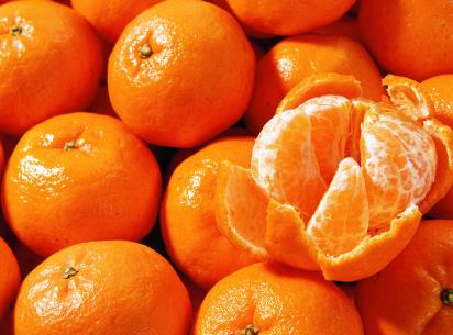 橘子富含维生素C和柠檬酸,前者具有美容作用,后者则具有消除疲劳的作用。如果把橘子内侧的薄皮一起吃下去,除维生素C外,还可摄取膳食纤维——果胶,它可以促进通便,并且可以降低胆固醇。