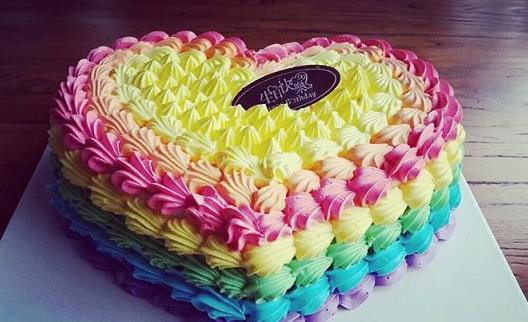 彩虹蛋糕是有奶油外层,内里有缤纷彩虹层的蛋糕。彩虹蛋糕由于外表简单,内里缤纷而广受大家喜爱。相传彩虹蛋糕起源于一位英国王子的家厨研发出一种雪白奶油外层,内里缤纷的彩虹层,受到皇室的喜爱。在当时贵族经常出入的饭店都以彩虹蛋糕为招牌甜点。彩虹蛋糕至此广为流传,被数以万计的甜点师不断繁衍创作,传遍全世界。