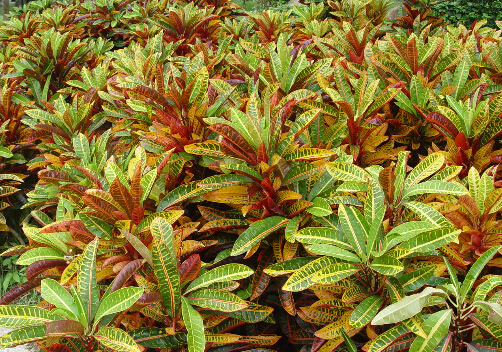 自然界是奇妙的,其中变叶木就是代表之作。变叶木顾名思义就是叶子不断变化,以其叶片形色而得名,其叶形有卵形、披针形、椭圆形,还有波浪起伏状、扭曲状等等。其叶色有亮绿色、红色、白色、灰色、淡红色、紫色、深红色、黄色、黄红色等。
