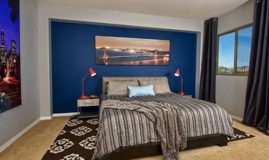 白色的床搭配上天蓝色的背景墙以及床单,首先在视觉上就给人一种特别优雅、清新的感觉。在你注意不到的地方还设计了抽屉样式的收纳,孩子的玩具、零碎的衣物之类的都可以放进去。