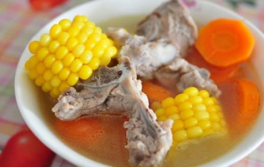 玉米红萝卜脊骨汤有益肠胃、润肺燥的功效,玉米能止血、利尿,又能降胆固醇,红萝卜宽中行气、健胃助消化,猪脊骨补阴益髓又健筋骨,此汤对糖尿病者,以及 消化不良、食欲不振的高血压者特别适宜。胡萝卜除含维生素A外,还含有一定糖、蛋白质等营养素,可促进血红蛋白的生成,故有补血作用;排骨可益精髓、强骨。此汤有润燥滋阴,养筋强骨之功效。小儿行动迟缓,筋骨发育欠佳食之有疗效。