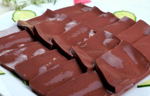 在国内,人们喜欢用血豆腐制作菜肴,称之为“液体肉”。动物血中含铁量较高,而且以血红素铁的开式存在,容易被人体吸收利用。处于生长发育阶段的儿童和孕妇或哺乳期妇女多吃些有动物血的菜肴,可以防治缺铁性贫血。同时,由于动物血中含有微量元素钴,故对其他贫血病如恶性贫血也有一定的防治作用。