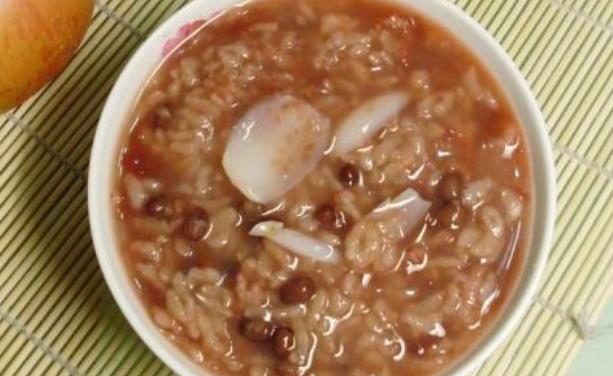 做法:糯米60克、桂圆肉10克、去心莲子20克、枣6克、冰糖适量。先将莲子洗净,红枣去核,糯米洗净,浸泡在水中;莲子与糯米加600毫升的水,小火煮40分钟,加入桂圆肉、红枣再熬煮15分钟,加冰糖适量,即可食用。