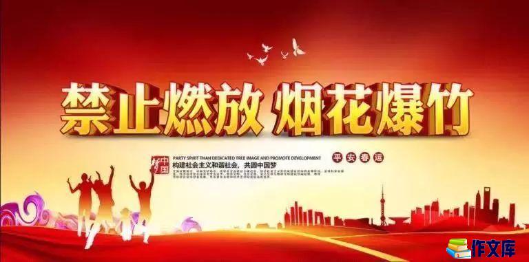 每逢新春佳节来临之际,市民都会以燃放烟花爆竹的方式欢庆传统节日,营造喜庆气氛。然而烟花爆竹燃放时会释放出大量的颗粒物和硫化物,加剧雾霾程度,损害空气质量,影响人体健康,下面是作文库小编整理的不燃放烟花爆竹范文,欢迎阅读参考。