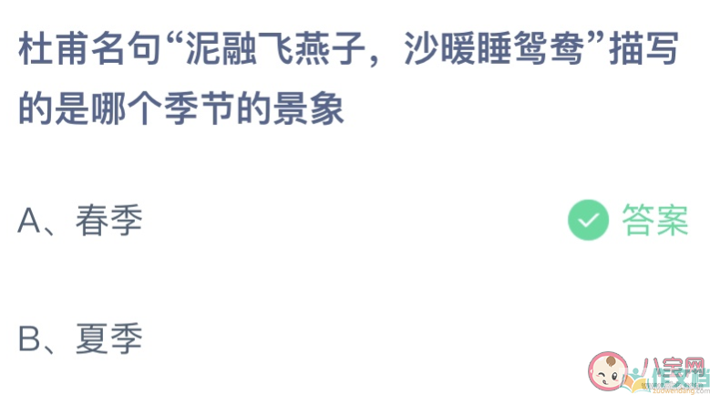杜甫泥融飞燕子沙暖睡鸳鸯描写的是哪个季节景象 蚂蚁庄园4月8日答案
