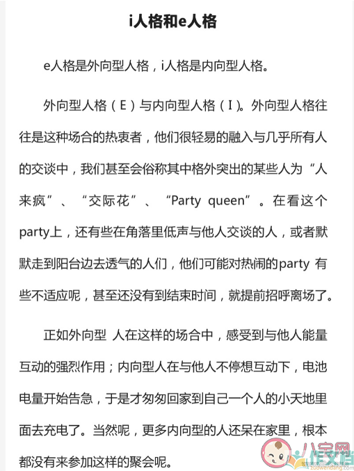 “为i做e”登上热搜,很多网友一脸懵逼,这里的i和eMBTI人格测试中的不同性格,在一群内向的人当中促使自己变成外向,奇奇怪怪无用的知识又增加了,那么,i人和e人是什么意思?下面作文档小编就带来介绍。