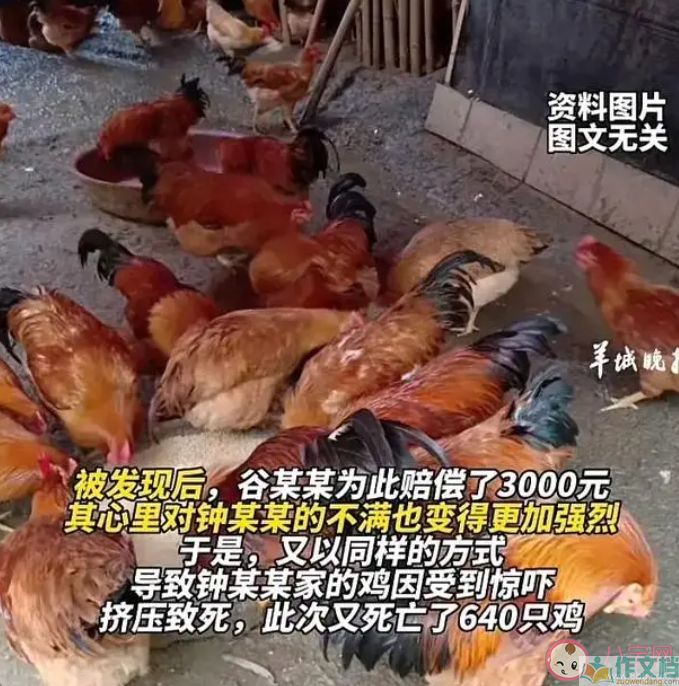 近日,湖南衡阳县人民法院公开审判了一起故意毁坏财物案。被告人谷某某为打击报复钟某某,趁夜色偷摸至其养鸡场,在鸡棚门口用手电筒照射鸡群,460只鸡因互相挤压、踩踏而死亡。被发现后,谷某某为此赔偿了3000元,其心理对钟某某的不满也变得更加强烈。