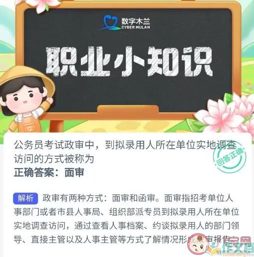 蚂蚁新村公务员考试政审中到拟录用人所在单位实地调查访问的方式被称为 4月13日答案介绍