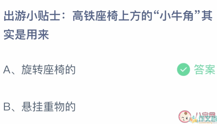 高铁座椅上方的小牛角其实是用来 蚂蚁庄园4月29日答案介绍