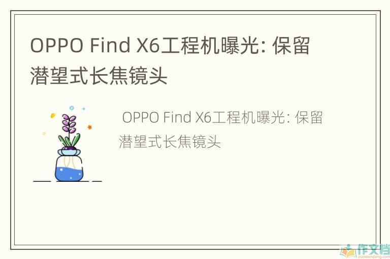 OPPO Find X6工程机曝光:保留潜望式长焦镜头