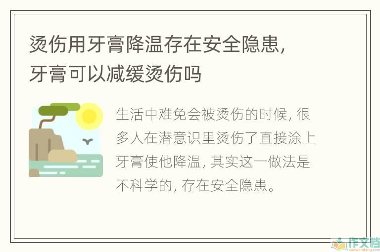 烫伤用牙膏降温存在安全隐患,牙膏可以减缓烫伤吗相关文章: