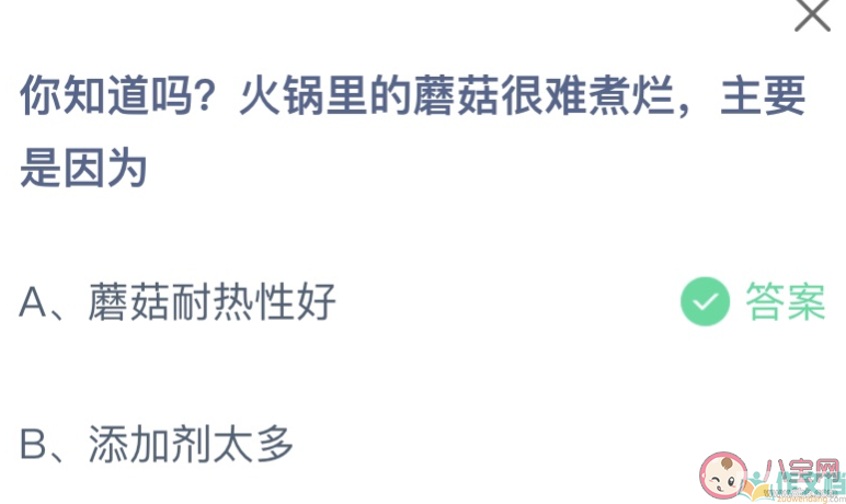 蚂蚁庄园火锅里的蘑菇很难煮烂主要是因为