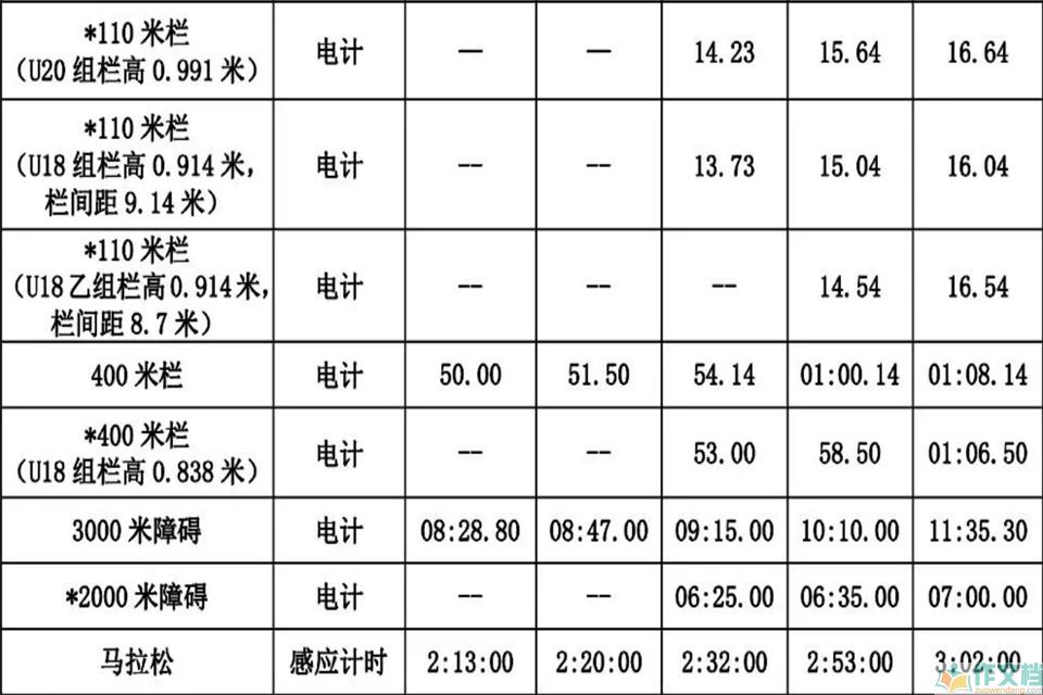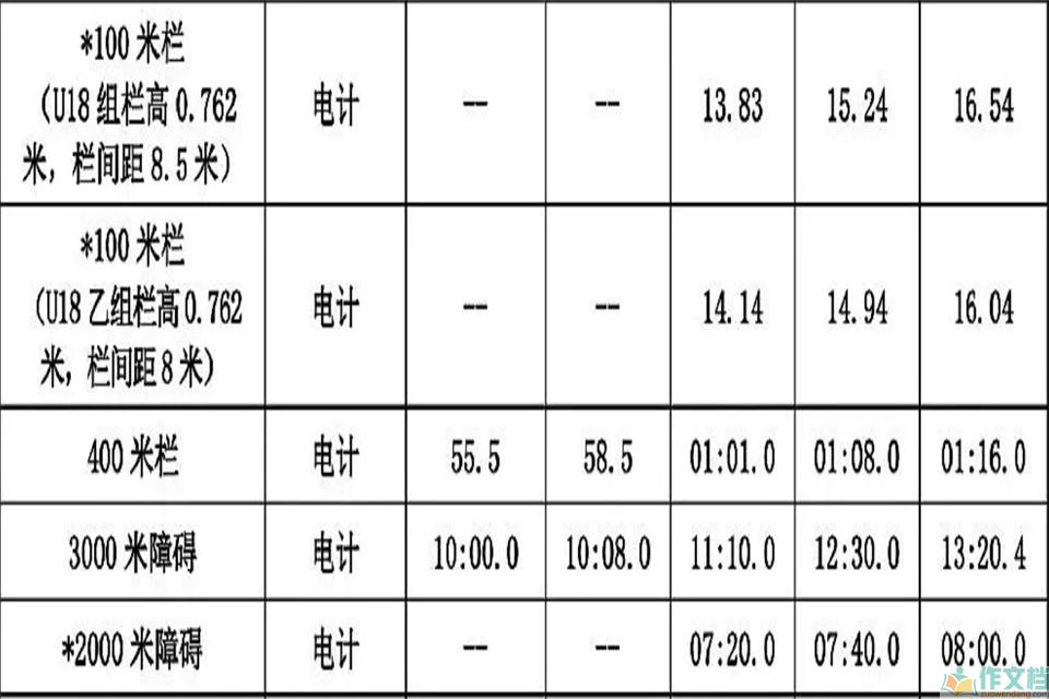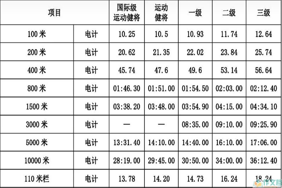 最新运动员等级标准表 男生