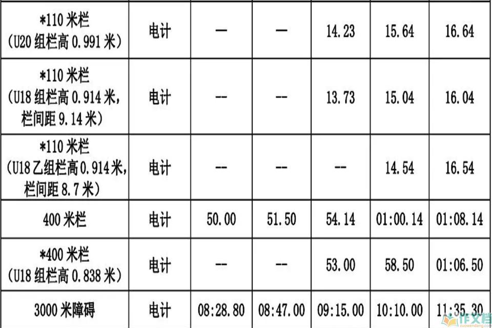 400米健将标准