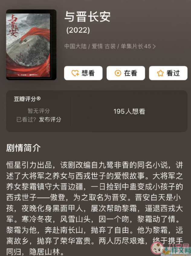 《与晋长安》改编自九鹭非香的同名小说,是由陕文投艺达影视、恒星引力出品的电视剧,讲的是大将军之养女与西戎世子的爱恨故事。