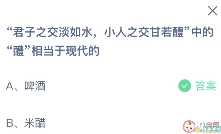 君子之交淡如水小人之交甘若醴中的醴相当于现代的 蚂蚁庄园8月6日答案介绍
