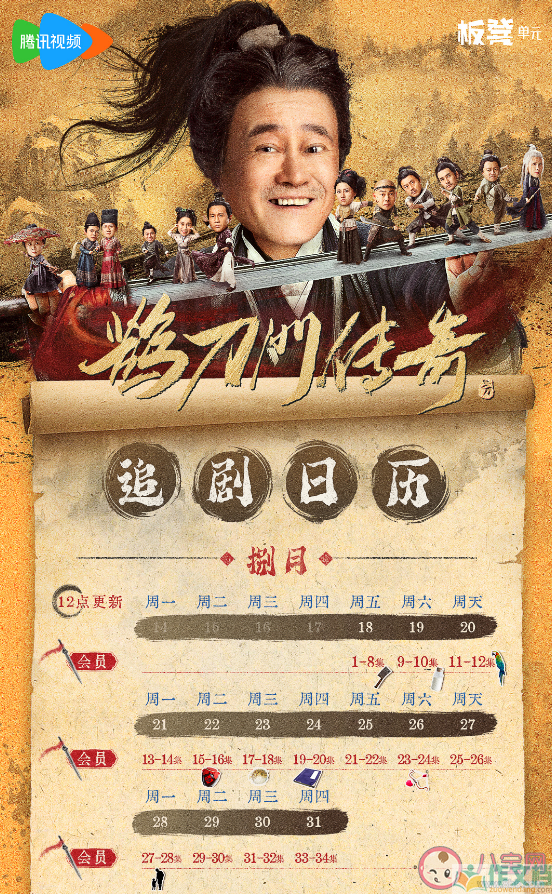8月18日起,每天中午12点腾讯视频全网独播,会员每日更新2集,一共34集,首更8集,追剧日历如下: